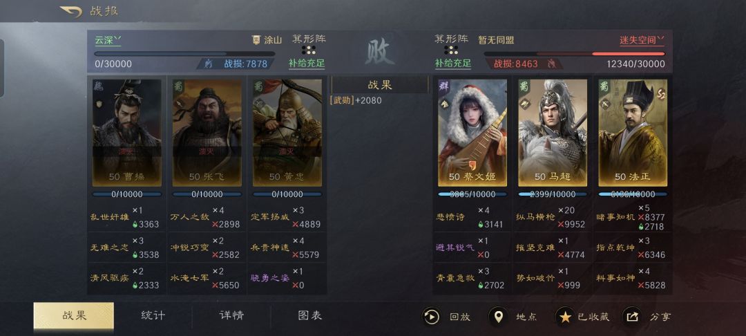 特别鸣谢游戏ID名为“迷失空间丷”的玩家朋友,给本文提供了宝贵的创作素材。在他的筹谋之下,蔡文姬和马超、法正摆出了箕形阵,身处前排的蔡文姬在战斗中表现出了惊人的坦度,对面的张飞和黄忠都没能破了她的身。