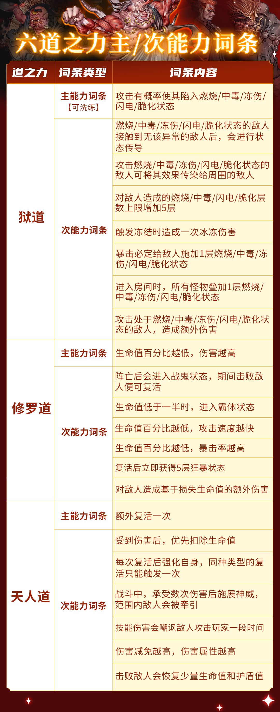 狱:主脆化,攻击传染敌人,异常状态加上限,暴击叠异常,攻击异常造成额外伤害(2.3.5.7)