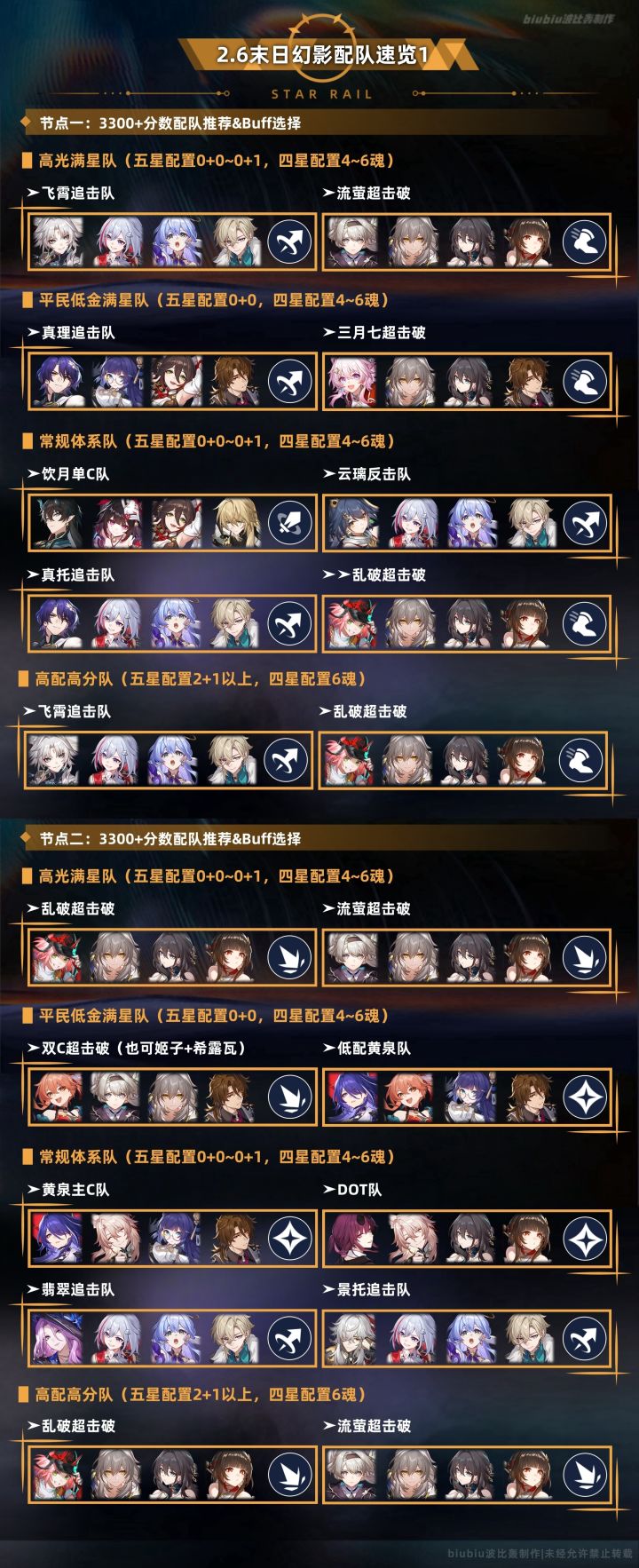 上半得益于buff3的存在,追击体系应对起来会更容易一些,其中飞霄追击队体验最好,但建议手动,消灭精英怪后再去应对boss会更容易通关;平民玩家则可以考虑真理追击队,但需有一定练度才能打够3300分;由于有外宇宙之冰和卡芙卡的存在,整体属控制环境,生存选择抵控角色更好;