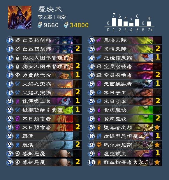 来自梦之郡丨雨爱 在国服前两百使用的一套模块术。这套魔块术比较偏控制,构筑上很针对快攻,放弃了传统的蜘蛛蛋和天才体系,更是带了双末日来增加快攻抗性和抢先手。而侏儒吸血鬼(因为博学者的关系往往比脏鼠好用)和鸽子则可以针对宇宙牧。此外力代也是一张好卡,进可攻退可守。
