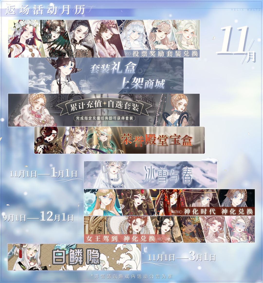 11月1日6:00-3月1日5:59,商城限时上架「白鳞返场礼盒」。