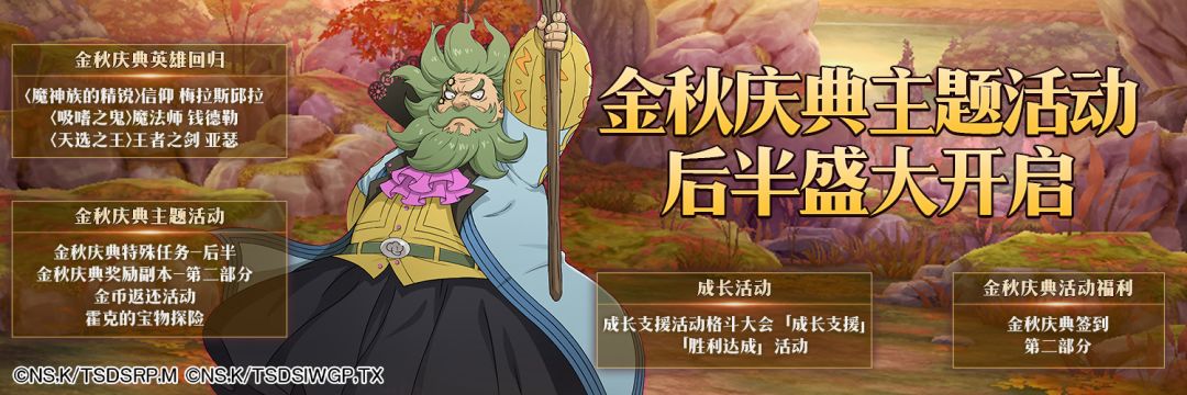 活动介绍:金秋庆典特殊任务-后半开启,活动期间,完成游戏中各角色布置的特殊任务可获得SSR进化项链、超觉醒币、巴塞尔之锤、SSR装备选择券等。