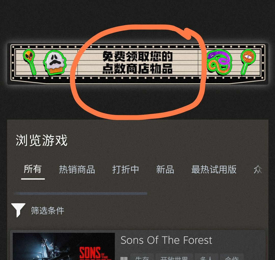 3.往下翻,找到圈住的那个地方(在浏览游戏的上边)