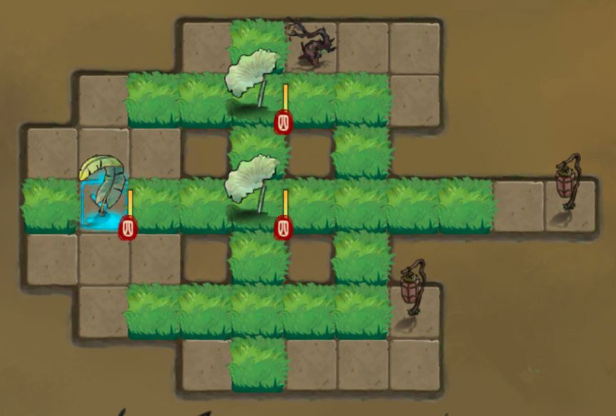 这里要再特别说明一下,因为执伞人可以把已经插在地上的伞再次挪动位置,而已经长出来草是不会消失的,因此长草的地块不一定有法力哦,执伞人在插伞的时候要注意目标地块是否周围有其他的伞并且与法力源点相连哦