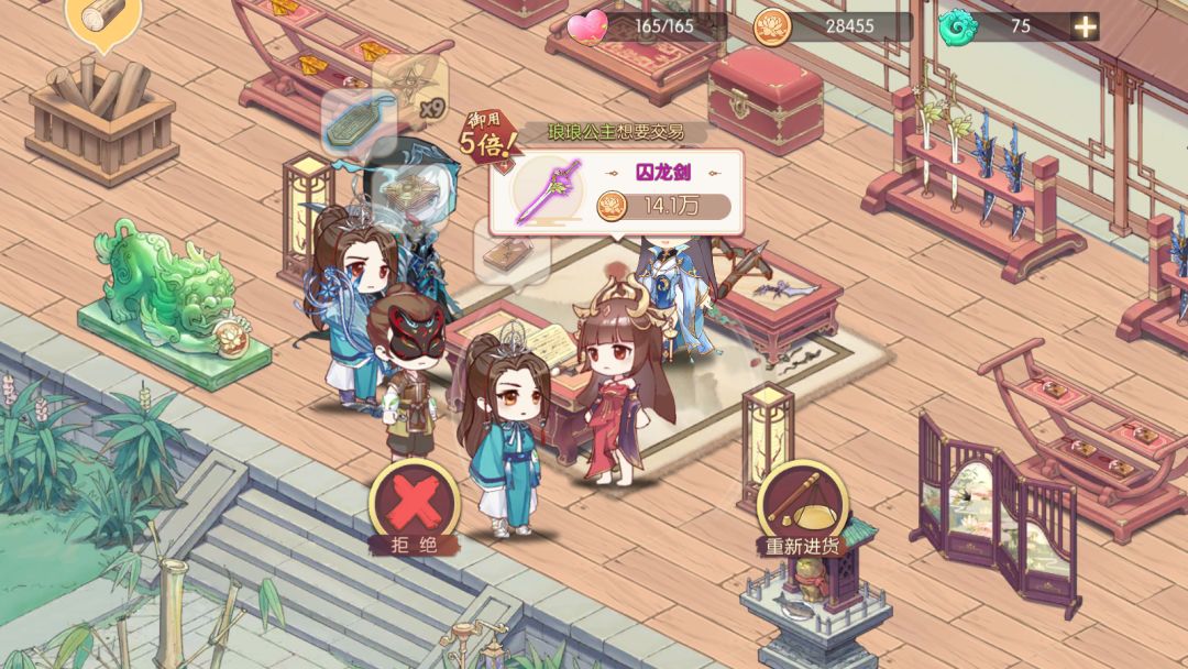 聪明的阁主就会发现了:买卖!剑阁内不止顾客,也会有商人!作为一个名震江湖的门派,当然也会有很多路过的客人等随机事件的发生,等待各位阁主前去处理哦!