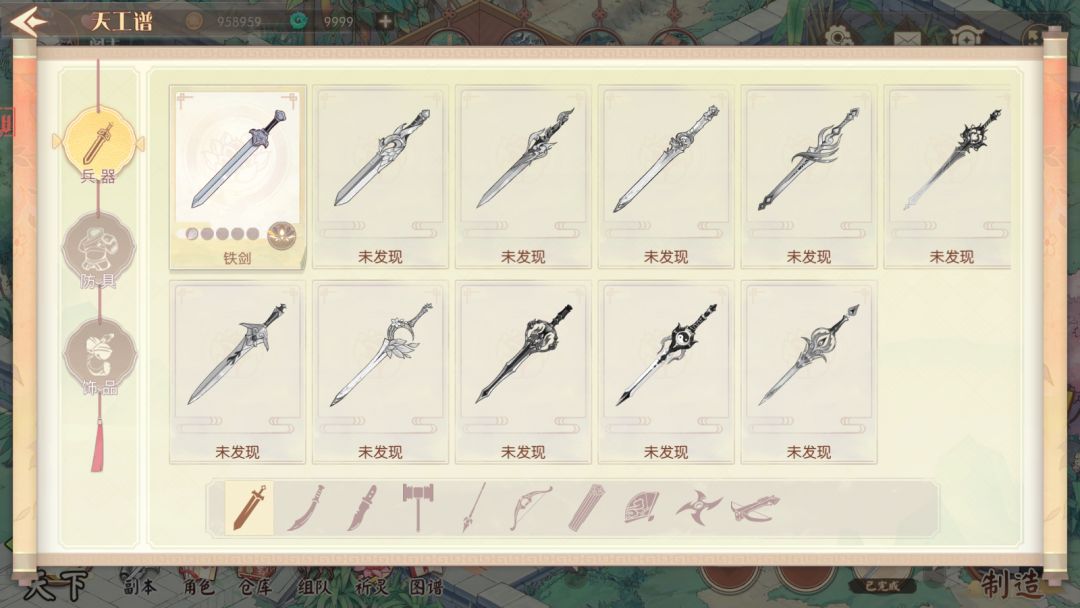 万剑珍宝,当然要记录在册了,天工谱来满足每一个收集党。打造完成的武器会全部收录在天工谱里!