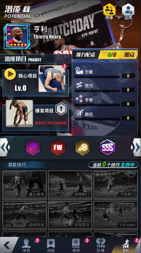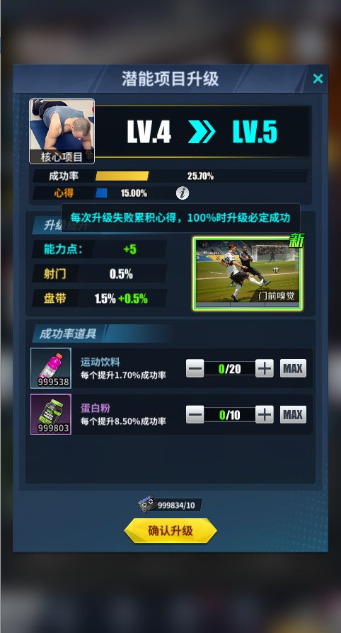 5.潜能升级可提升球员属性百分比、能力点和解锁潜能技巧