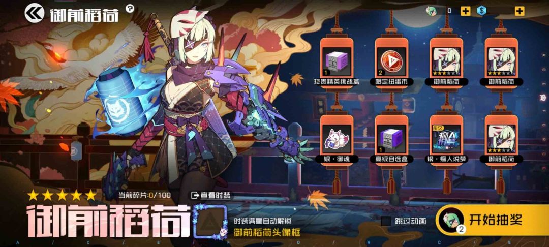 获取方式:10月1日12点上架的御前稻荷活动