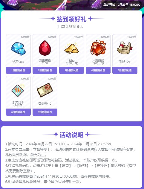 1、限时内点击签到礼包进入签到页,再点击下方的签到即可参与