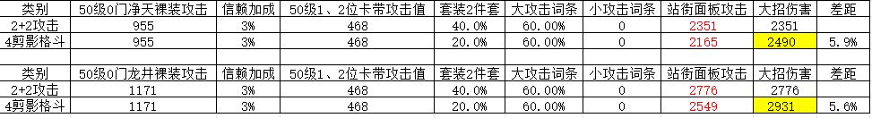 对比计算2攻击+2攻击与4剪影的大招伤害,因为这两套没有专属词条区别,卡带的大攻击词条假设毕业,