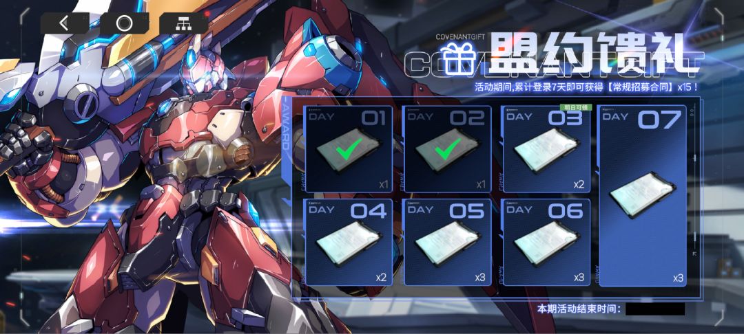 「盟约馈礼」活动期间,累计登录7天即可获得[常规招募合同]*15!