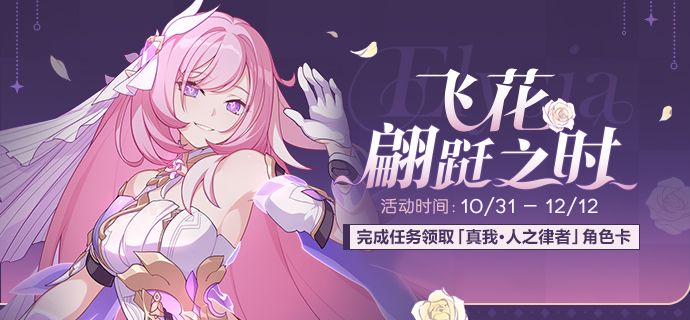 「飞花翩跹之时」活动开启!活动期间,舰长完成活动面板5个任务中的任意4个,即可领取「真我·人之律者」角色卡奖励!