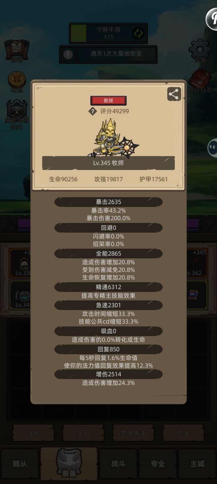 戒律牧属性浪费很严重,精通每件装备都要有,暴击2760主要就是为了奶得多。回复急速全能和增伤其实用处都不大,本体就是治疗和buff工具人,相对来说全能容错高一点。伤害来源主要靠被动晋升指引,技能晋升叠层高以后,配上赐福饰品的灌注来BUFF随从靠随从打伤害。操作手法上,就卡CD用晋升,暗影鞭笞减速减轻前排压力。灌注好了就用,苦修,盾,治疗,恢复和祷告这几个治疗技能循环开给大哥奶好。压制高压期大哥掉血以后用。暗影魔蓝不多时放出来看好血量,尽量不要在暗影魔血少的时候给它加上血,死了就死了,戒律弃掉神圣一击以后不缺蓝。然后就是震爆和沉默两个打断安排好,正常来讲戒律的打断CD是循环不过来的,所以随从最好安排有打断的。