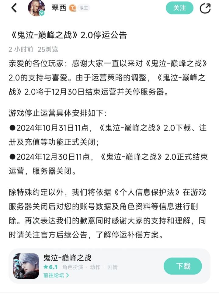 鬼泣巅峰之战 停服公告