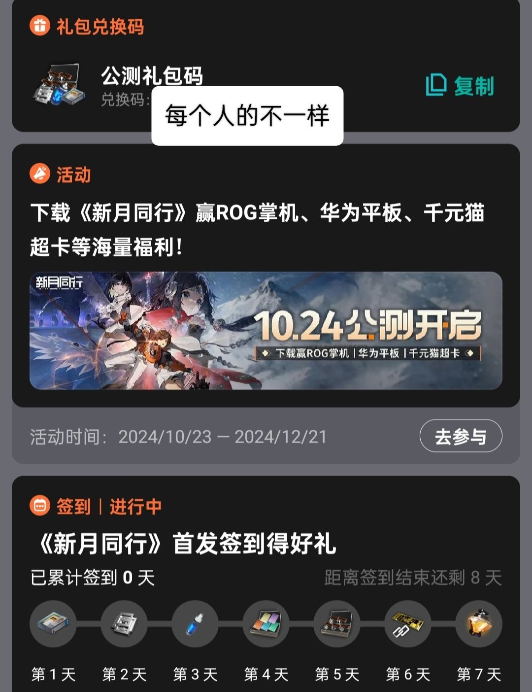 通用兑换码:一起同行(300尘3体力药)。新月同行1024(300尘)。