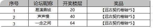 *普通奖:活动截止时每20层,额外赠送1份游戏礼包【远古契约卷轴*5】*