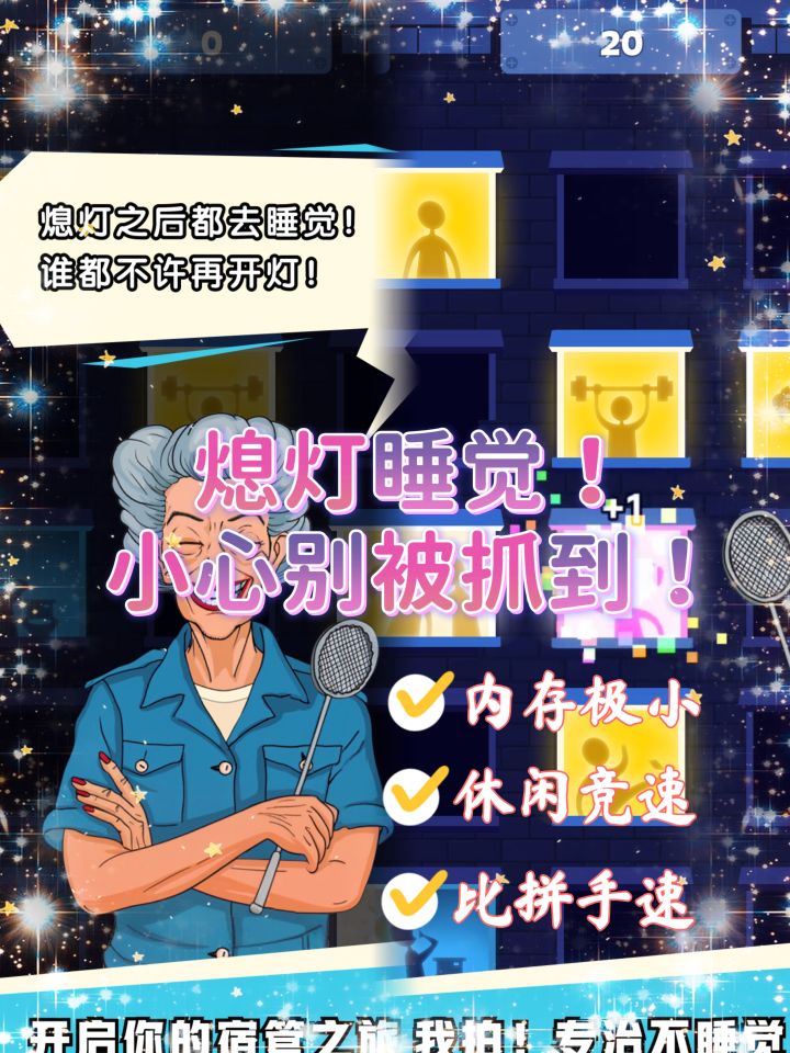 🔥游戏背景设定在充满青春气息的大学校园,你将扮演一位宿管阿姨,让学校的夜猫子学生按时熄灯睡觉。