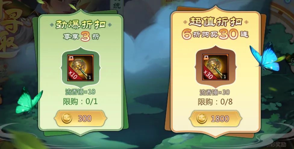 流香锤劲爆折扣礼包上架!购买次数有限,3折、6折特惠畅快爽抽~