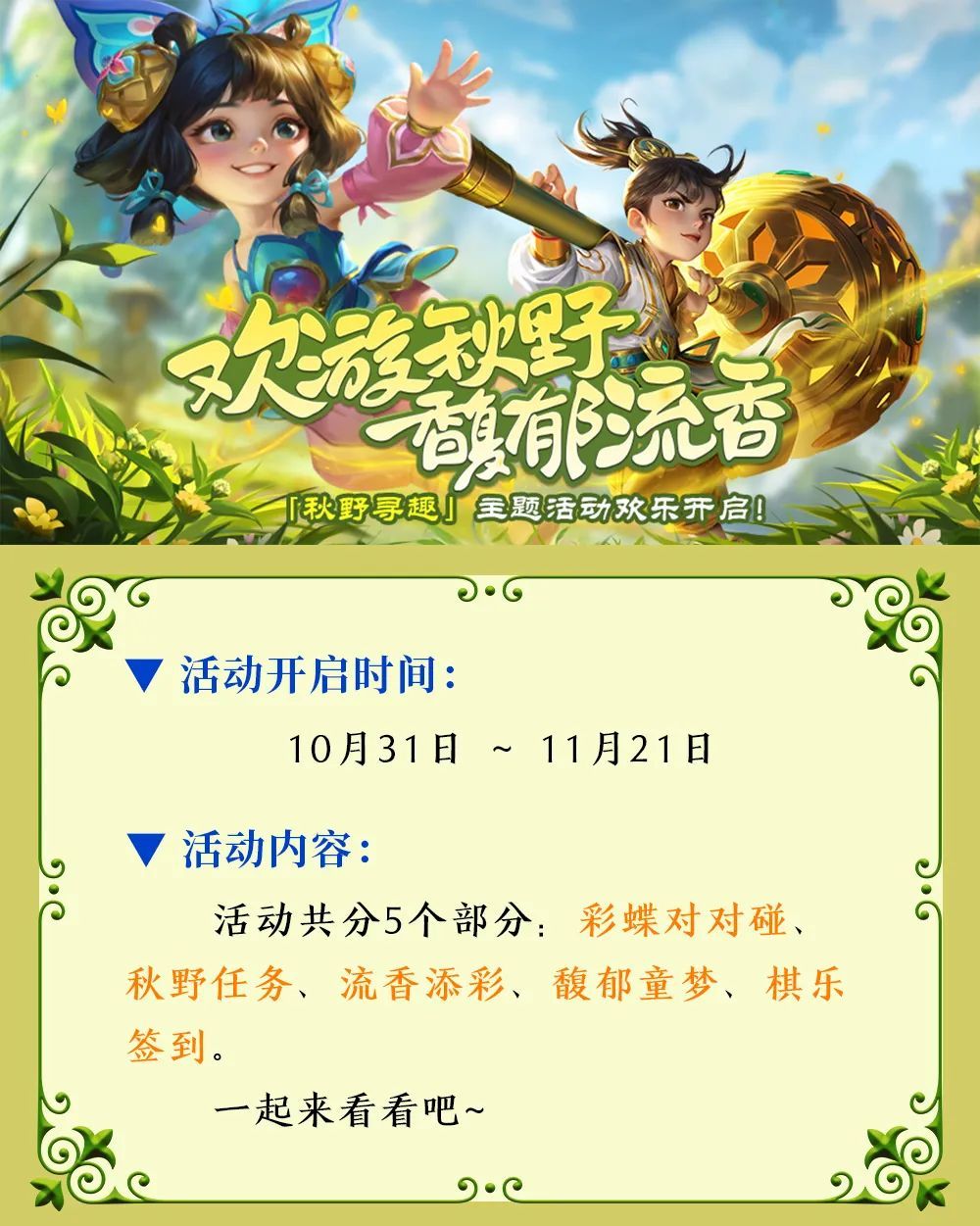 和梦梦一起,前往新版本来场快乐秋游吧!!