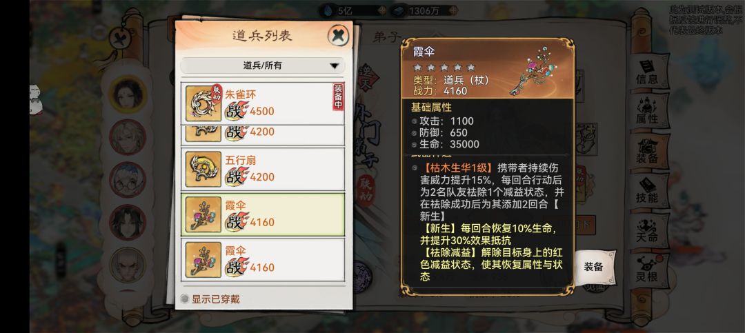 7,装备和法宝的选择: