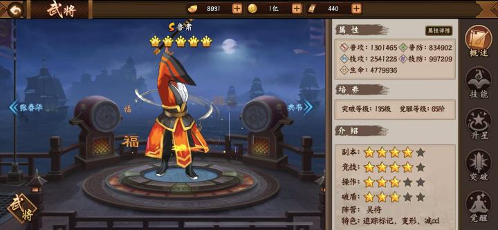 吴国阵营里的诸葛瑾,堪称当前副本输出的版本之子,输出能力远超其他武将,绝对的T0水平,值得优先培养,且门槛不高,四星就够用,谁用谁知道;无双小乔则是当前最强的副本辅助武将,不论是加血能力还是BUFF效果,都堪称一绝,远超其他辅助武将;周瑜或者鲁肃,则是吴国阵营里副本输出能力相对较强的武将,输出能力基本处于T1水平。