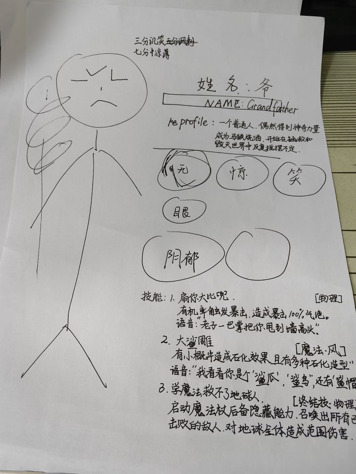 大家好,我是cha.cha,是第一次参加GameJam的solo选手。我的游戏将用rpg maker进行制作。游戏名是在还没公布主题时,我就突然之间想到了。那会儿琢磨起人设的样图,我没有绘画基础。就随便用当时毁灭世界的心情随意地把一个人设画出来了。然后就有了这个名称和主人公人设。虽然主题为Light,但我也想好怎么把这个略微黑深残的故事写下来了。
