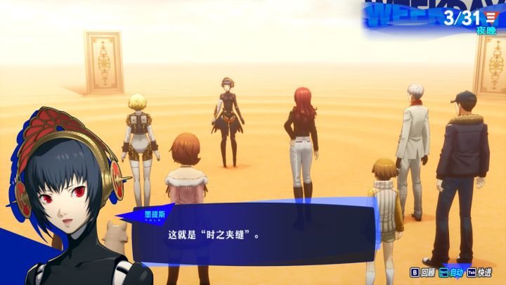 《P3R后日谈》的剧情发生在剧情时间线的2010年3月31日。也就是说,此时我们亲爱的牢理(虽然结城理毫无疑问是正派主角,但依旧被玩家们冠以“牢”字辈的“爱称”,有点抽象但也确实减轻了其悲剧色彩,让玩家们在情感上更容易接受他的牺牲)已经离开世界二十多天了,所以后日谈肯定没他的戏份了。我们将以人形兵器少女埃癸斯的视角展开冒险。
