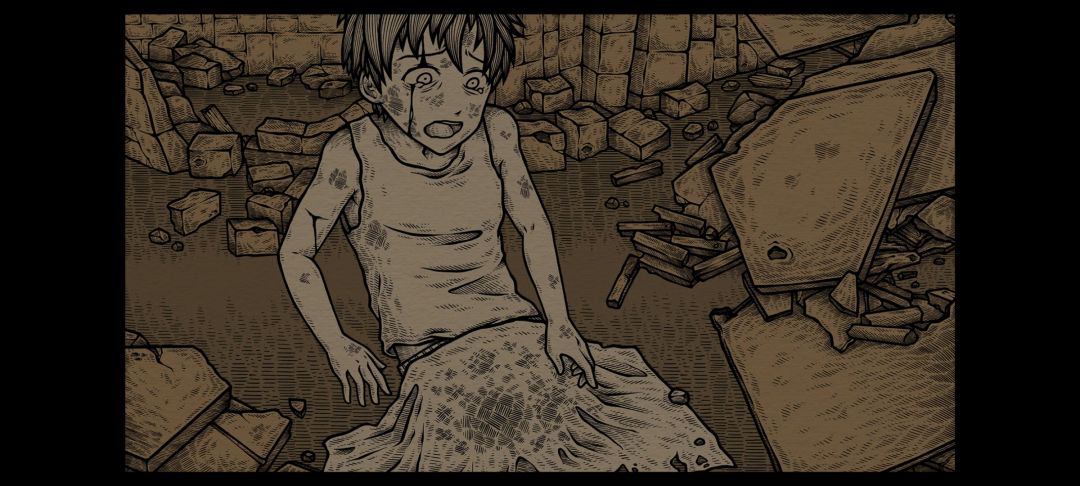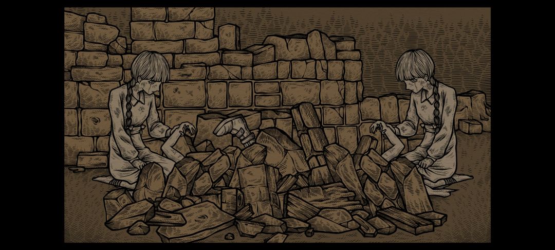 一开始玩是因为这个怪诞的画风吸引我,玩到一半逐渐发现这是一款内核是祈祷世界和平以及控诉战争残酷的游戏,可能是因为游戏时长较短的原因,游戏虽然出现了被战争伤害的人们的缩影,也简单叙述了一下他们的悲惨遭遇,但是结局太仓促太空白,并且我也有几个不能理解的点:
