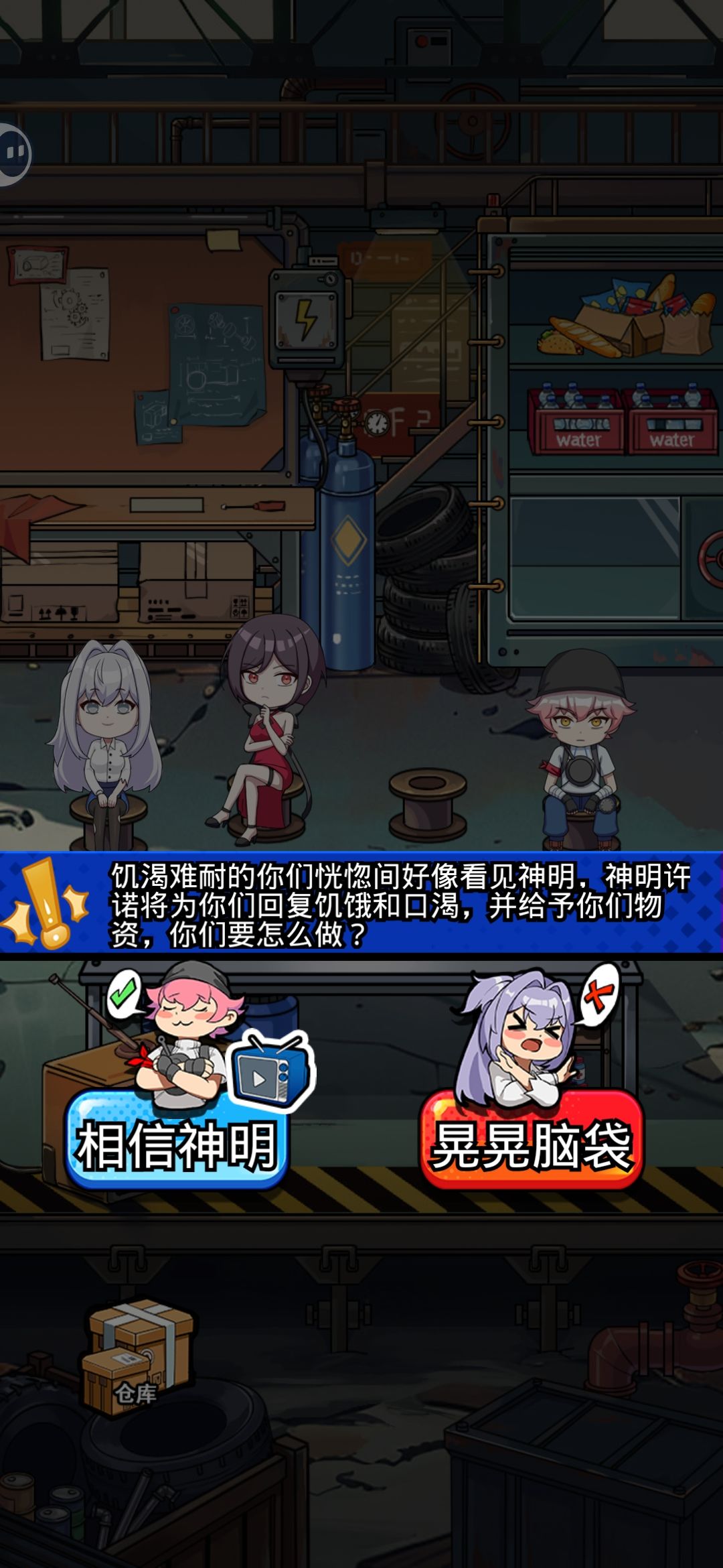 4.作为一款末日生存类游戏,他的探索属性太少了,基本上只需要派遣一个人外出,然后等待他带着物资回来,其主要操作基本上都放在了家里的三个人身上,这让游戏显得稍微有点无聊,唯一的乐趣反而成了偶尔发生的“意外”事故。