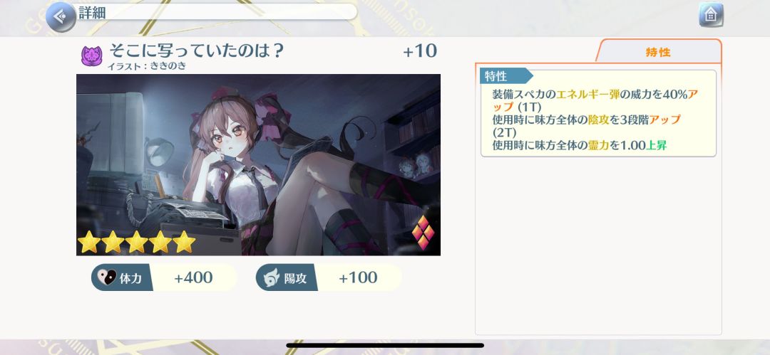 全体阴攻、回p外加能量弹增伤,看上去不错,但是为什么面板给的是阳攻啊喂....看着还行但是完全不值限定绘卷这个价,