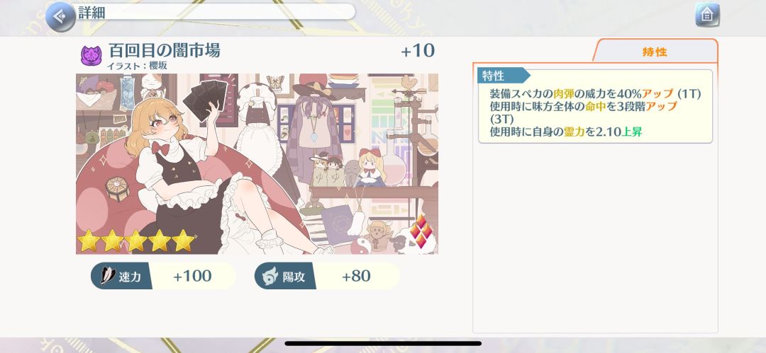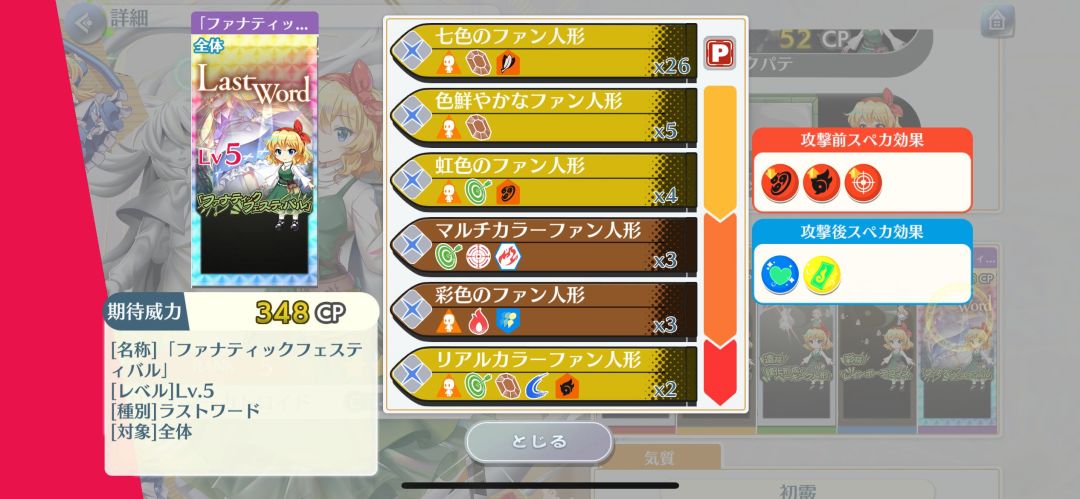 特攻:14段:巫女、魔法使、骚灵、阴阳玉、文化特典、秋(和泳装、夏,学士服、春所对应),