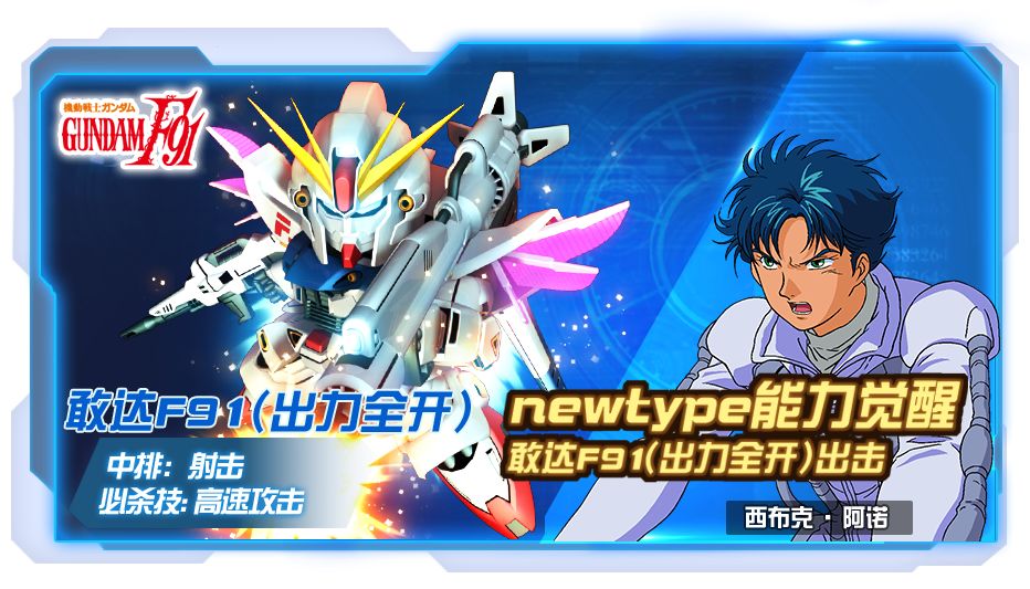 大噶好,准备好迎接国庆新机了吗?敢达F91(出力全开)的技能介绍来咯,这究竟是一台怎样的机体呢?一起来看看吧。