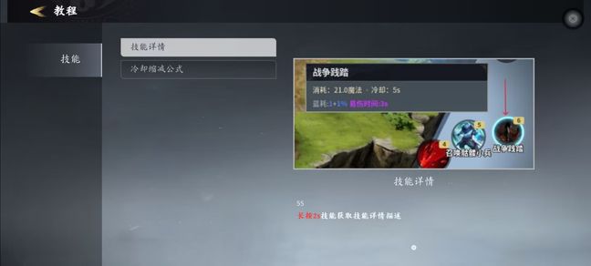 如何查看技能属性呢?可以长按技能2s 技能就会有相关说明弹出