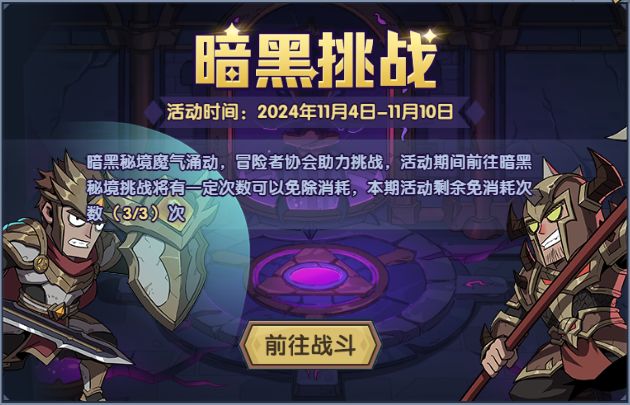 活动期间挑战暗黑秘境优先扣除免消耗次数,快去挑战吧~