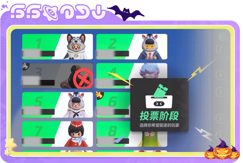 杂耍艺人也可以和队友们默契配合,会议中分析出两名狼人星宝时,队友们票一名狼人,自己标记另一狼人,让本阵营获得胜利!