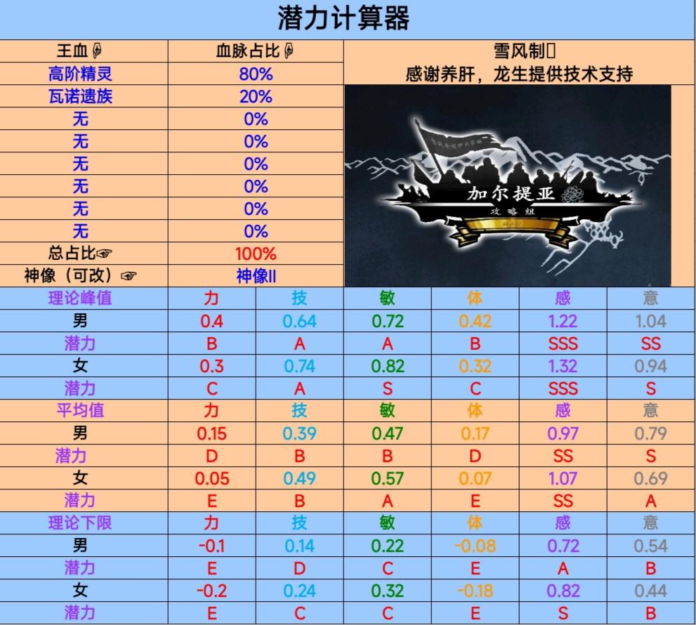 做这篇是我不想每次混血 又去看混血计算器