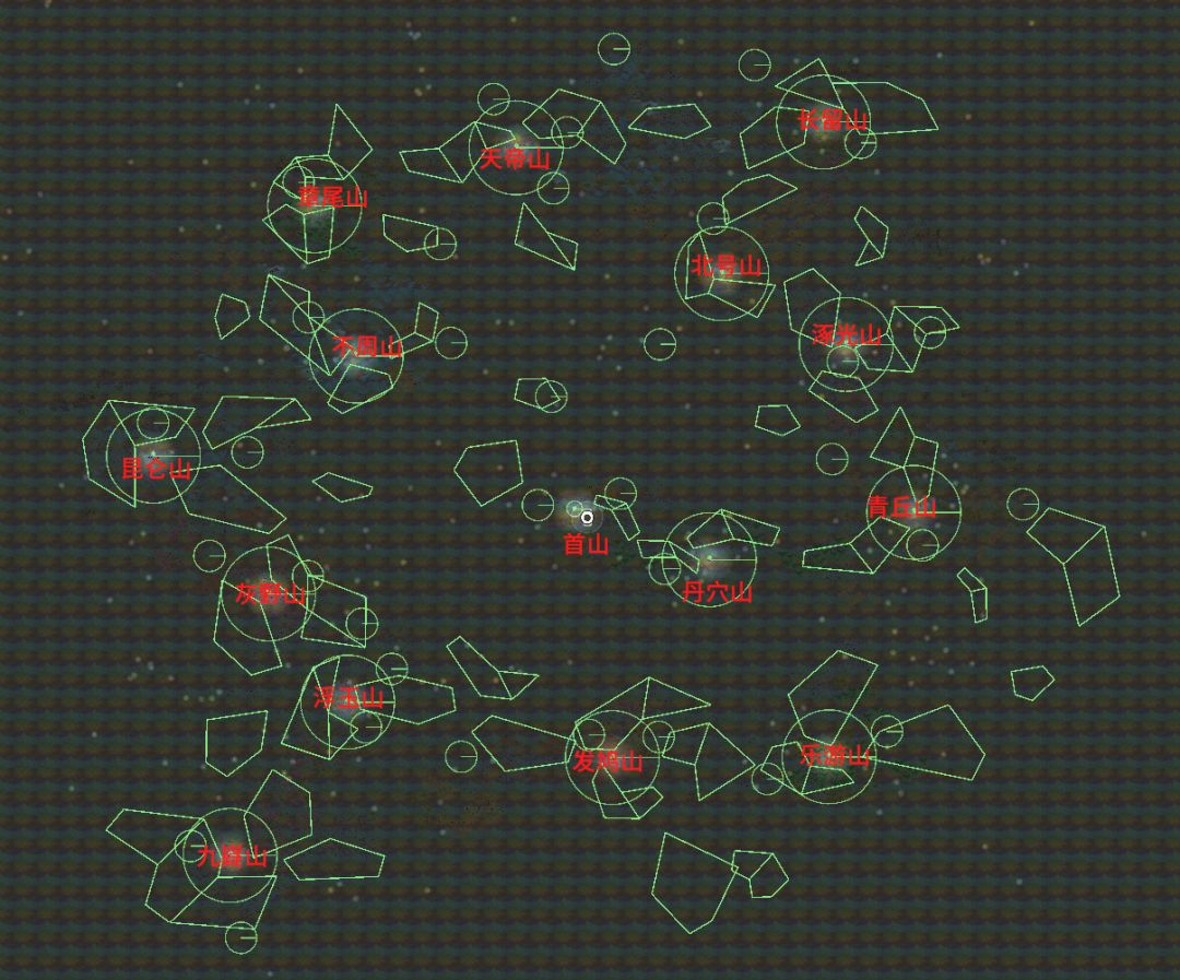 - 山名外围的大圈为探测距离,飞到这个距离即可在地图上看到该山名字