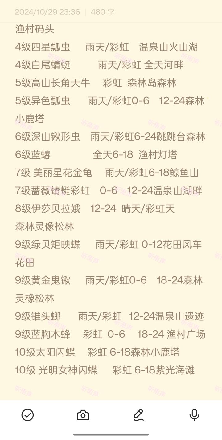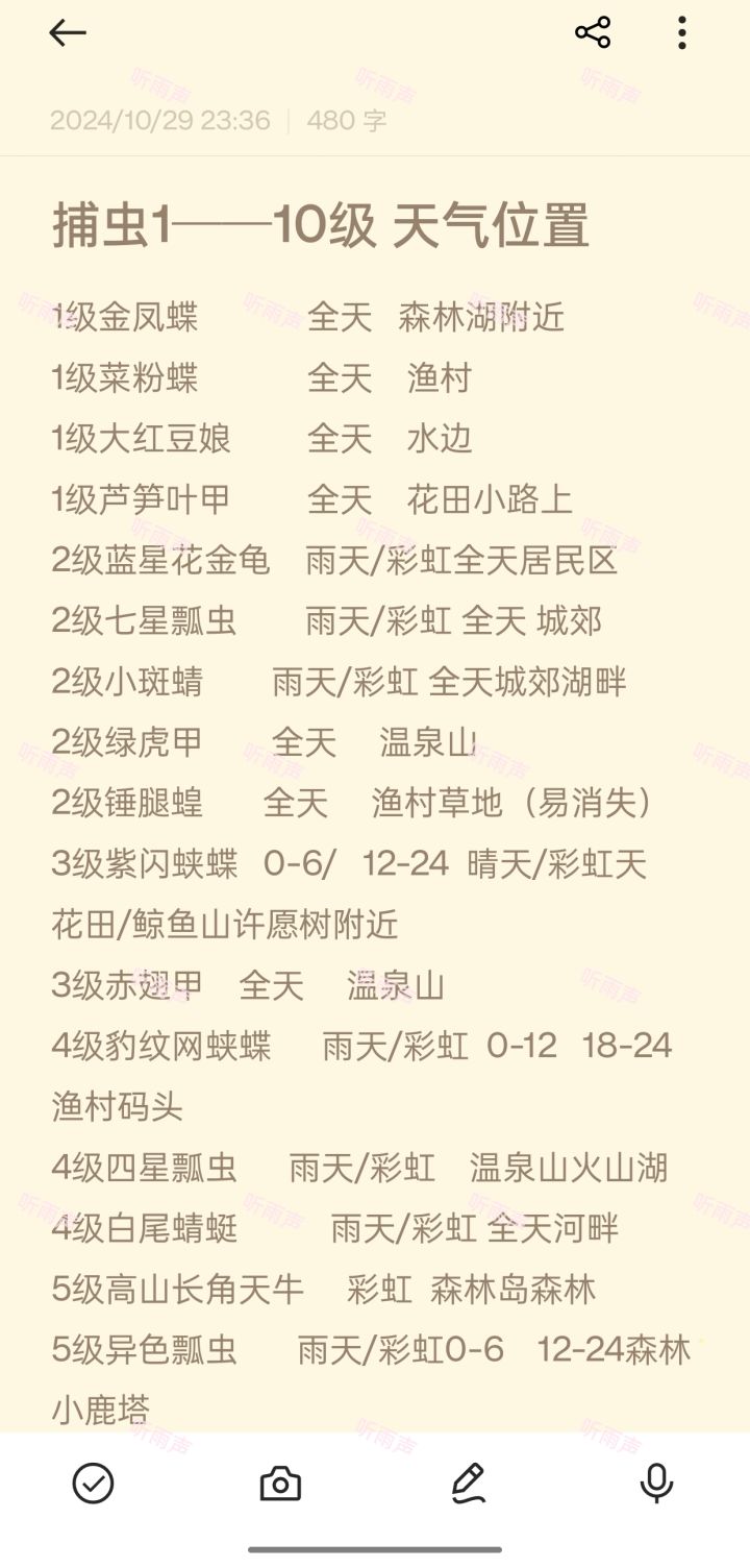 心动小镇奇灵夜季1~10级捕虫天气位置!