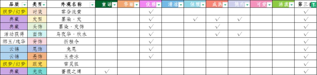 2.部件单独得分由属性(华丽、清凉、成熟等)构成,越接近主题要求分数越高,特殊标签额外加分。