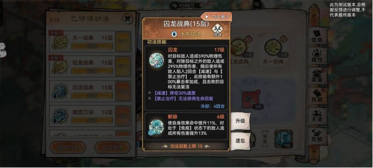5. 功法选择:卫寒可以选择可以狂龙+囚龙,囚龙+傲雪。