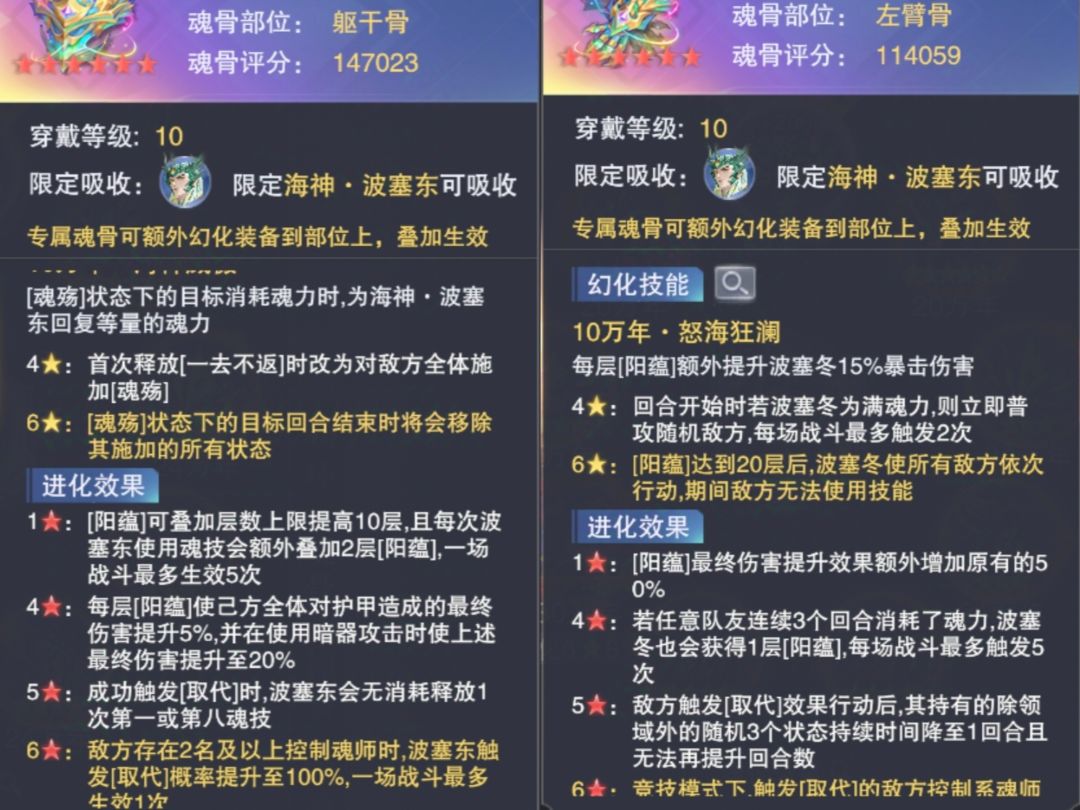 控制系:波塞东:躯干骨-核心魂骨:移除敌方状态,增加取代概率;左臂骨:增加伤害的;