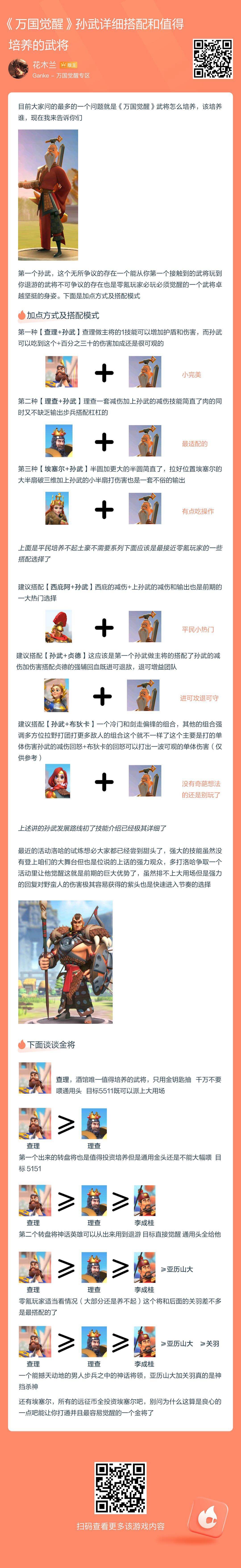 【必读】《万国觉醒》孙武搭配及推荐培养的武将!