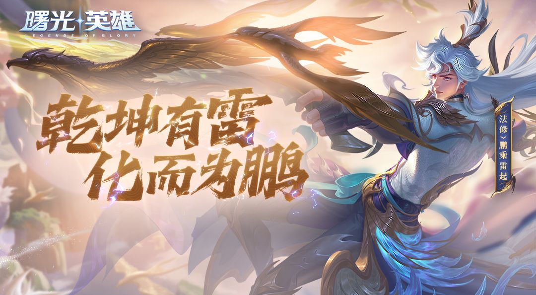 霹雳之声,凌空而来。因雷霆自天空中迅疾而生,在众多神话中,人们往往将雷神与鸟的意象联系在一起。从明朝开始,雷神塑像普遍为鸟嘴人身、手执斧凿的造型。我们参考了其中鸟的意象作为设计元素,令群鸟化为他的武器。同时将角色本身赋予“鹏”的含义,在中国传统文化中,可率万数群鸟者为鹏。鹏为群鸟之王,具有“抟扶摇而上者九万里”的力量,更契合角色九天神将形象的设计。在局内技能设计中,由群鸟组成的武器,可在释放技能时变形,提高了角色的等级感和精致度。