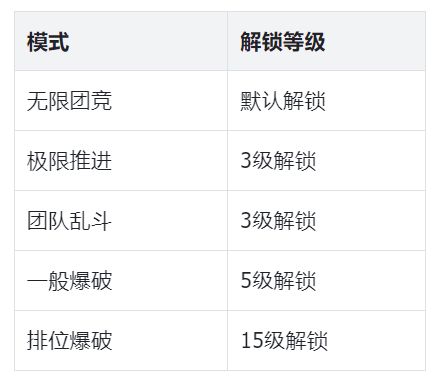 - 调整了各模式的解锁等级,具体调整如下: