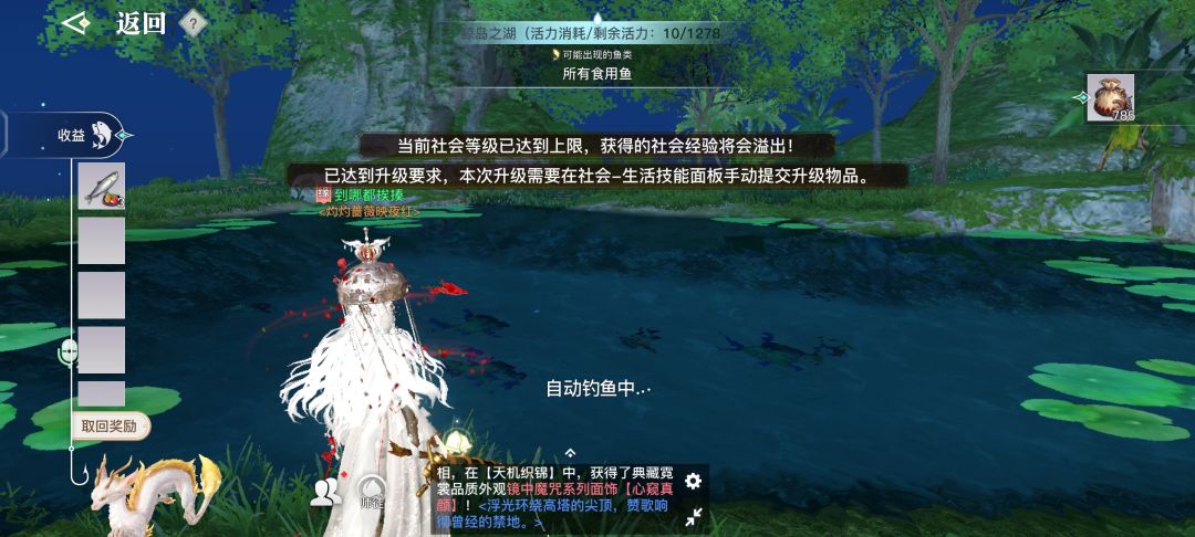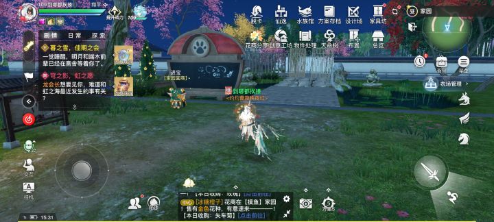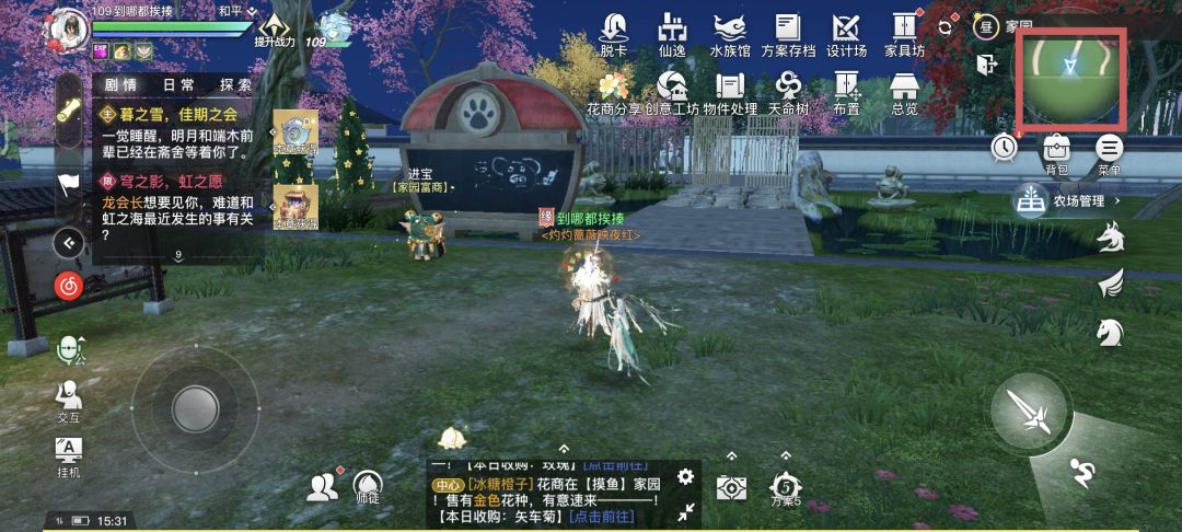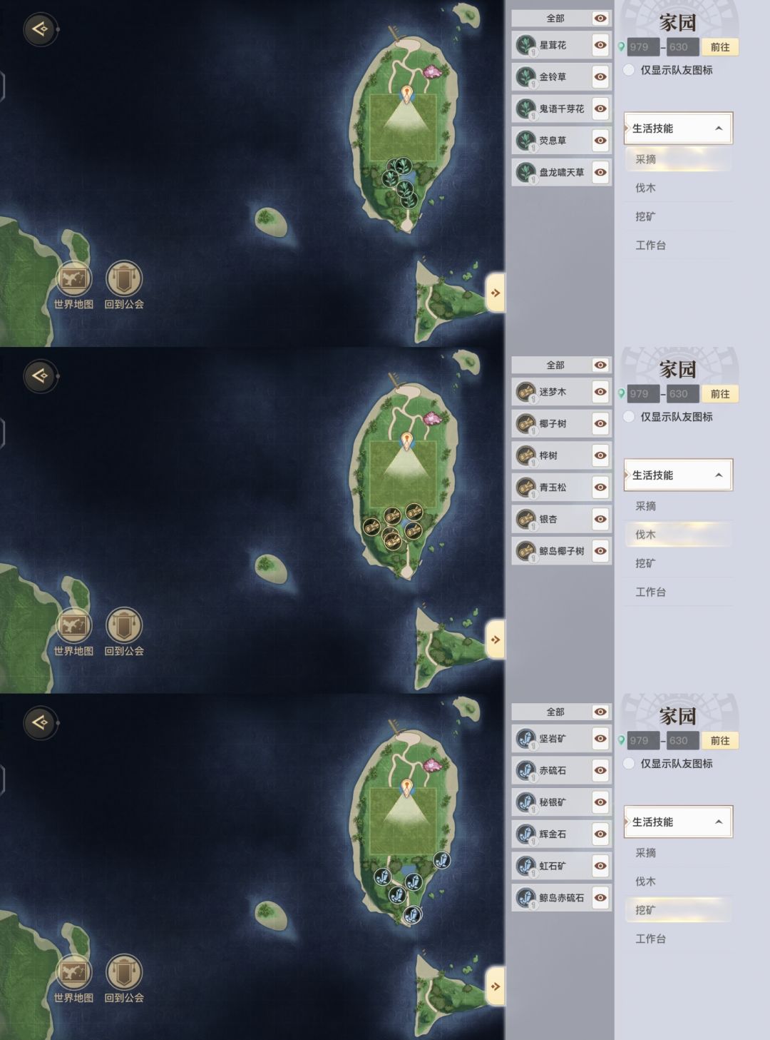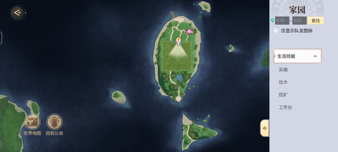 二·打开你的家园(图3)进去家园后点击右上角小地图(图4)进入以后右边任务栏(图5)就会显示生活技能可以挑选你需要的技能(图6)进行自动寻路。钓鱼是在(图7)区域在这里可以随机钓到各种鱼类(图8)。