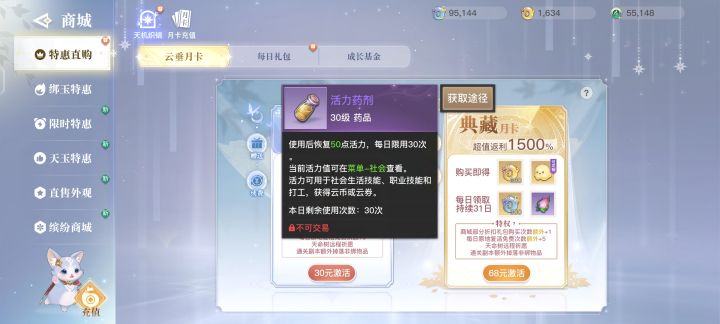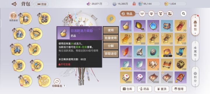 一·如(图1)背包打开可以看到大量的活力瓶,这些每天使用上限是80瓶。但是如果你想使用更多瓶就可以如(图2)所示购买双月卡增加使用次数,每天使用999瓶不是梦!