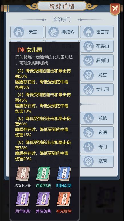 2、功法职业和宗门羁绊效果都进行了扩展;