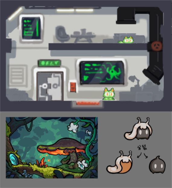 在最初还没有决定玩家是乌贼的时候,它的设定仅仅是史莱姆型生物,所以作了如上设计。