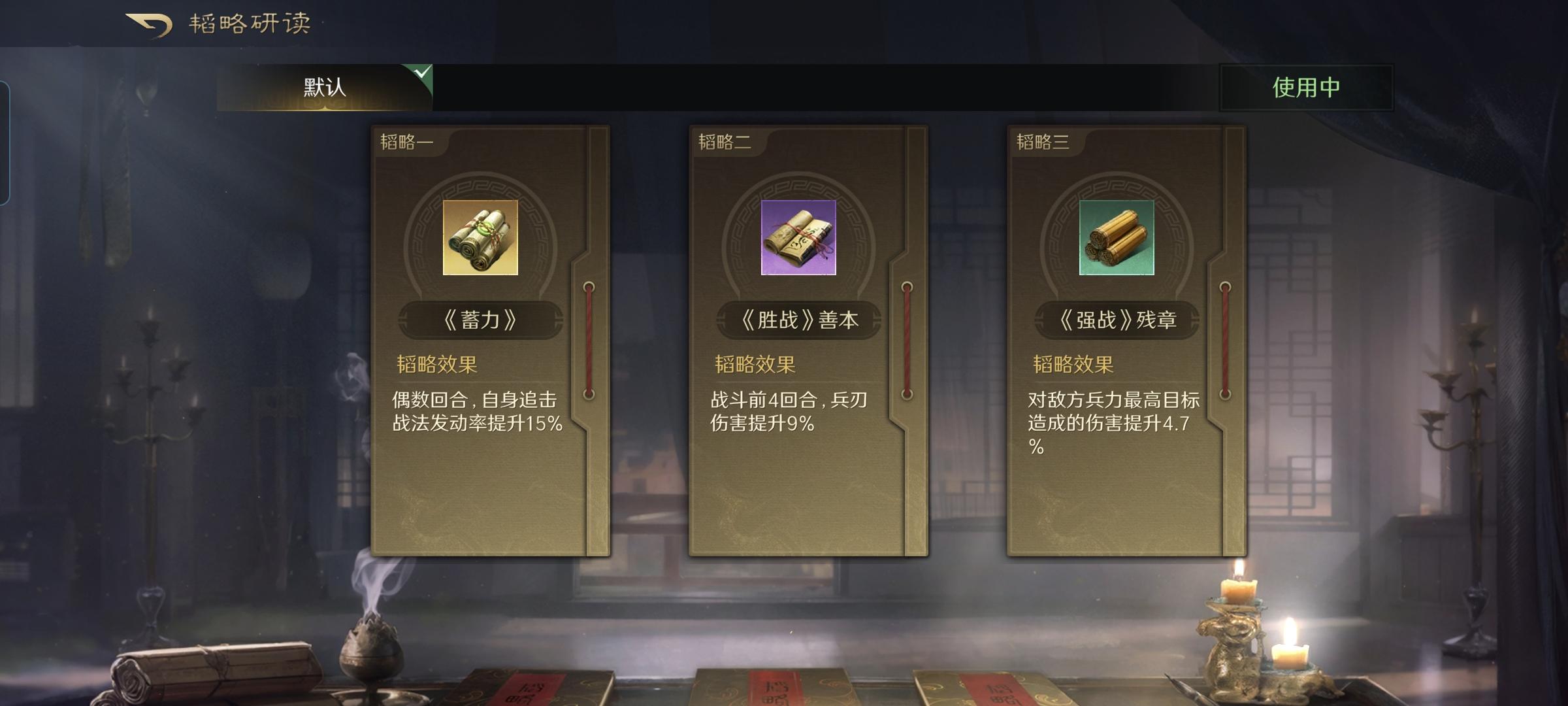 韬略库:蓄力(专属)+胜战善本+强战残章。