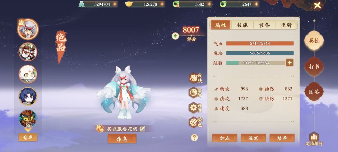 ***伏魔洞有战力要求,所以还要弄1个战力宝宝,绑定的低书,直接用来顶人鱼(卡速)或者青蛙(青蛙升神兽后资质还可以的,做耐攻或者隐攻)